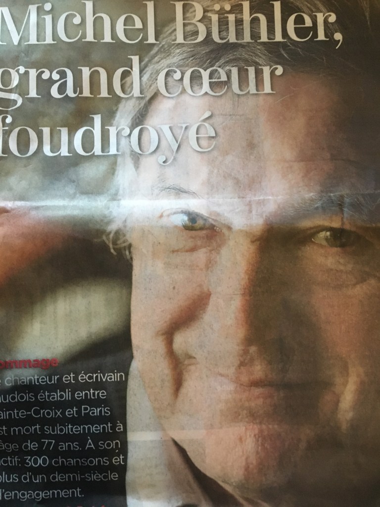 Il a accompagné toute ma vie. Je suis Vaudois comme lui l’était. Je suis sensible, comme lui l’était, Je suis énervé comme lui l’était. Michel Bühler est parti et ça me touche plus que je ne l’aurais imaginé. Depuis la Fête de la chanson romande jusqu’à ces jours derniers, il faisait partie de mon patrimoine affectif, tendre et parfois agaçant. Je l’avais rencontré en 2017 à la sortie de Vague, son 20ème album. C’était pour la RTS, l’émission Couleurs locales. J’étais allé derrière Montparnasse, là où il m’avait ouvert les portes de son petit domicile parisien. Il m’avait offert un café bien serré, il m’avait donné une chanson malgré une voix fatiguée ce matin-là. On s’était revu chez lui à Sainte-Croix. Il m’avait chanté et rechanté (pour mes images) Vague, avec délicatesse. On s’était parlé avec pudeur, avec une certaine gêne aussi; on s’était parlé à la Vaudoise, avec un sourire en coin. Et puis au revoir et merci… Salut l’artiste ! Oui, Michel Bühler, tu vas me manquer.